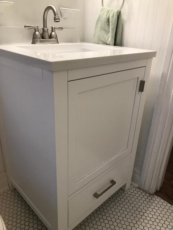 Allen Roth Ronald 36 In Almond Toffee Undermount Single Sink Bathroom Vanity With White Engineered Stone Top In The Bathroom Vanities With Tops Department At Lowes Com